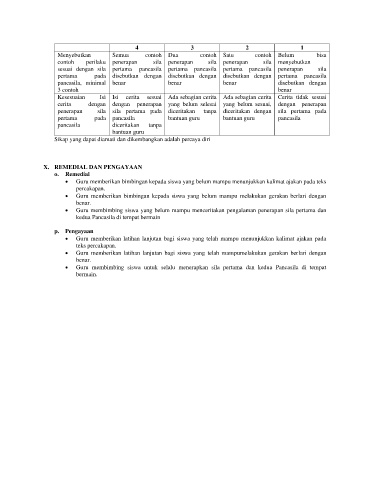 • Guru membimbing siswa yang belum mampu menceritakan pengalaman penerapan sila pertama dan
