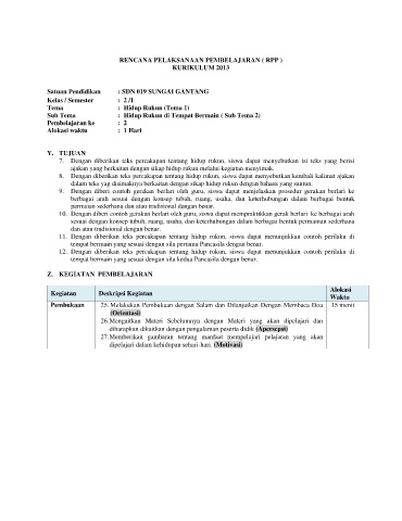 Sub Tema : Hidup Rukun di Tempat Bermain ( Sub Tema 2)