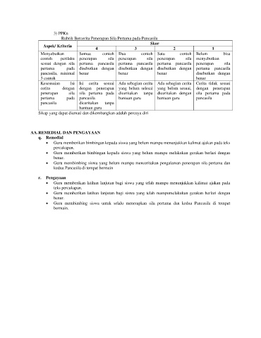 • Guru membimbing siswa yang belum mampu menceritakan pengalaman penerapan sila pertama dan