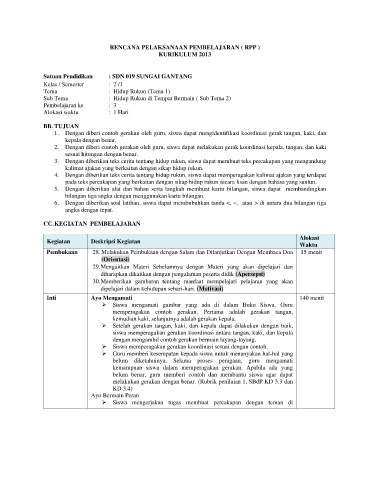 2. Dengan diberi contoh gerakan oleh guru, siswa dapat melakukan gerak koordinasi kepala, tangan, dan kaki