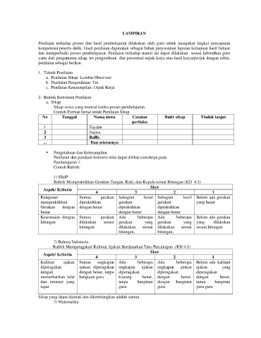 Penilaian dan panduan konversi nilai dapat dilihat contohnya pada