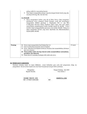 Penutup 26. Siswa mapu mengemukan hasil belajar hari ini 15 menit