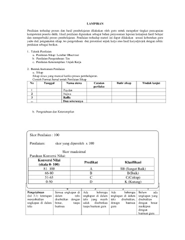 Penilaian terhadap proses dan hasil pembelajaran dilakukan oleh guru untuk mengukur tingkat pencapaian