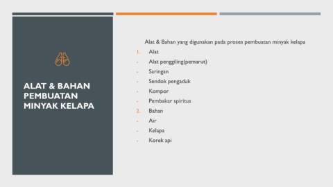 Alat & Bahan yang digunakan pada proses pembuatan minyak kelapa