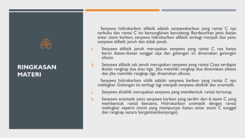 RINGKASAN b. Senyawa alifatik tak jenuh merupakan senyawa yang rantai Cnya terdapat