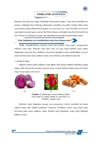 bunga, umbi, kulit buah, dan daun yang berwarna. Contoh indikator alami antara lain kubis