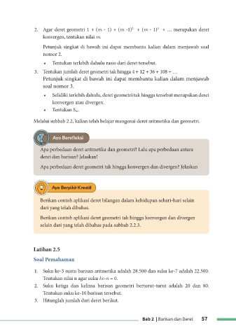 Melalui subbab 2.2, kalian telah belajar mengenai deret aritmetika dan geometri.