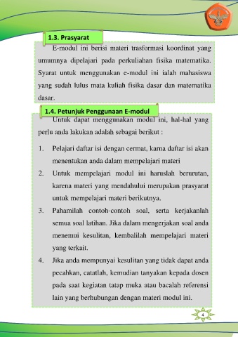 Syarat untuk menggunakan e-modul ini ialah mahasiswa