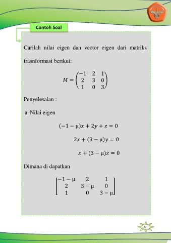 Carilah  nilai  eigen  dan  vector  eigen  dari  matriks