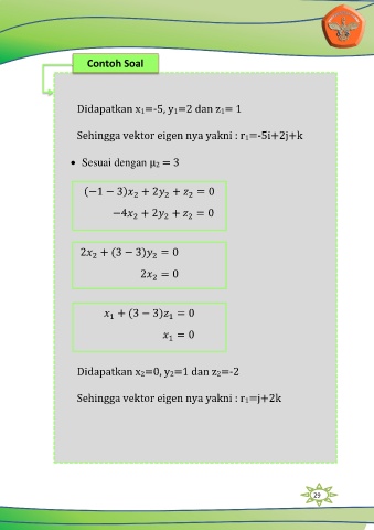 Sehingga vektor eigen nya yakni : r1=-5i+2j+k