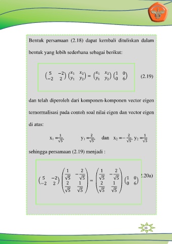ternormalisasi pada contoh soal nilai eigen dan vector eigen