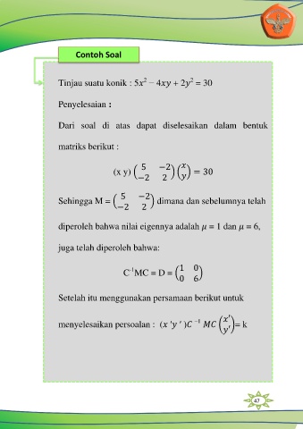 Tinjau suatu konik : 5 − 4 + 2 = 30