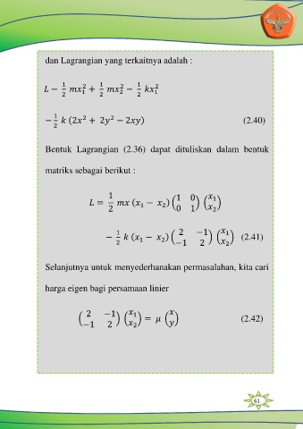 Bentuk Lagrangian (2.36) dapat dituliskan dalam bentuk