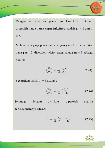pada pasal 5, diperoleh vektor eigen satuan μ = 1 sebagai