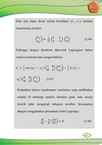 Dari sini dapat dicari sistem koordinat (x‟ x‟ ) melalui