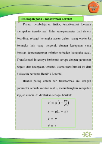 negatif dari kecepatan tersebut. Nama transformasi ini dari