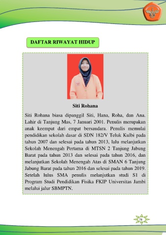 Siti Rohana biasa dipanggil Siti, Hana, Roha, dan Ana.