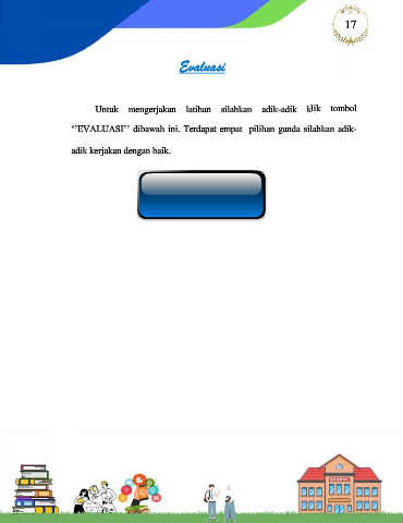 17 Evaluasi Untuk mengerjakan latihan silahkan adik-adik klik tombol ‘’EVALUASI’’ dibawah ini. Terdapat empat pilihan ganda silahkan adik- adik kerjakan dengan baik.