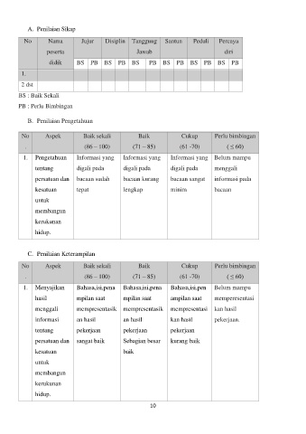 No Aspek Baik sekali Baik Cukup Perlu bimbingan