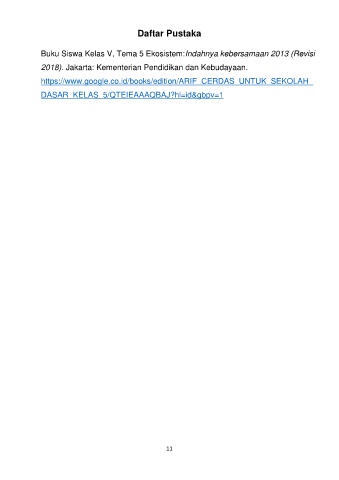 Daftar Pustaka Buku Siswa Kelas V, Tema 5 Ekosistem:Indahnya kebersamaan 2013 (Revisi 2018). Jakarta: Kementerian Pendidikan dan Kebudayaan. https://www.google.co.id/books/edition/ARIF_CERDAS_UNTUK_SEKOLAH_ DASAR_KELAS_5/QTEIEAAAQBAJ?hl=id&gbpv=1 11