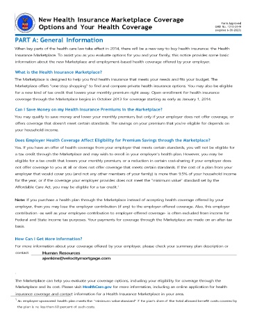 information about the new Marketplace and employmentbased health coverage offered by your employer.