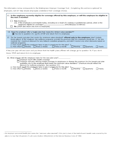 The information below corresponds to the Marketplace Employer Coverage Tool. Completing this section is optional for