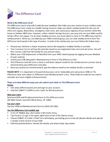 certain office visit copays. For all other medical services, you must submit a claim to The Difference Card for