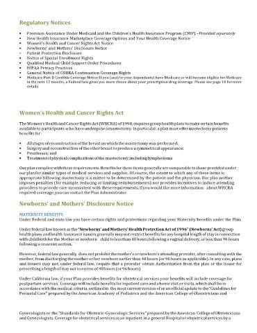 Under Federal and state law you have certain rights and protections regarding your Maternity benefits under the Plan.