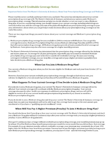 prescription drug coverage with The Master’s University & Seminary and about your options under Medicare’s