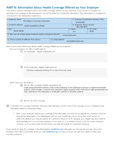 PART B: Information About Health Coverage Offered by Your Employer