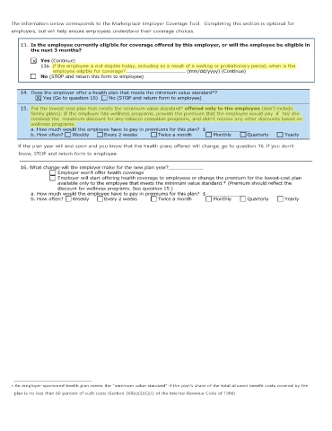 The information below corresponds to the Marketplace Employer Coverage Tool. Completing this section is optional for