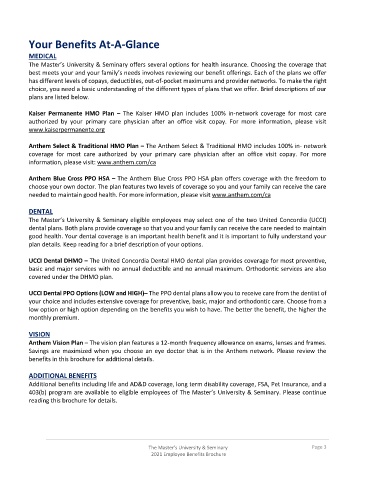 The Master’s University & Seminary eligible employees may select one of the two United Concordia (UCCI)