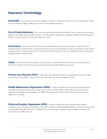 Deductible – the amount you owe for health care services before your health insurance plan begins to pay.