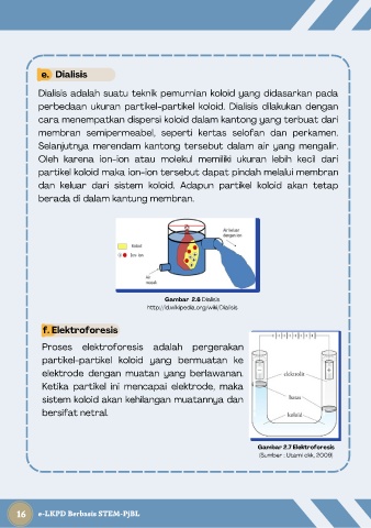 perbedaan ukuran partikel-partikel koloid. Dialisis dilakukan dengan