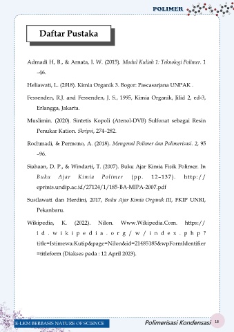 E-LKM BERBASIS NATURE OF SCIENCE Polimerisasi Kondensasi 18