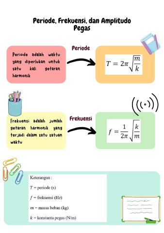 Periode, Frekuensi, dan Amplitudo Pegas Periode Periode adalah waktu yang diperlukan untuk satu kali getaran harmonik Frekuensi adalah jumlah Frekuensi getaran harmonik yang terjadi dalam satu satuan waktu