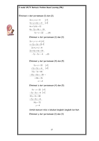 Eliminasi x dari persamaan (1) dan (3)