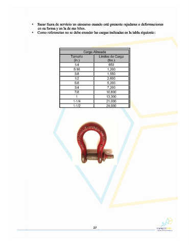 • Sacar fuera de servicio un cáncamo cuando esté presente rajaduras o deformaciones