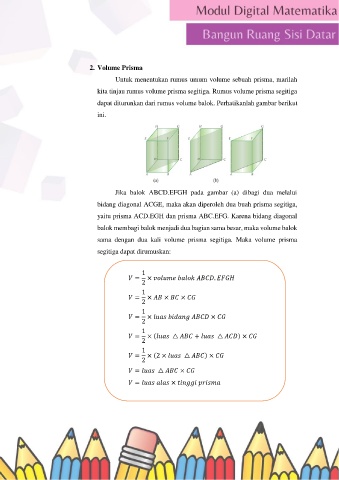 sama dengan dua kali volume prisma segitiga. Maka volume prisma
