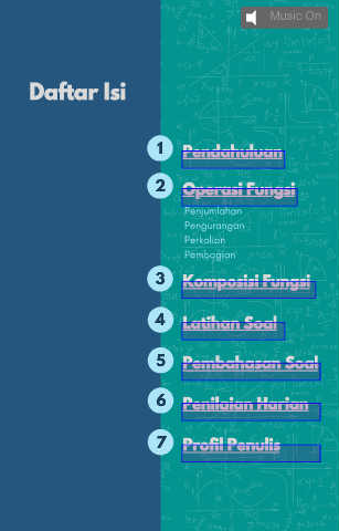 Daftar Isi 1 Pendahuluan 2 Operasi Fungsi Penjumlahan Pengurangan Perkalian Pembagian 3 Komposisi Fungsi 4 Latihan Soal 5 Pembahasan Soal 6 Penilaian Harian 7 Profil Penulis