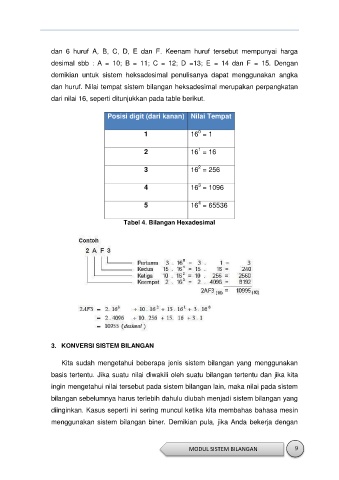 dan huruf. Nilai tempat sistem bilangan heksadesimal merupakan perpangkatan