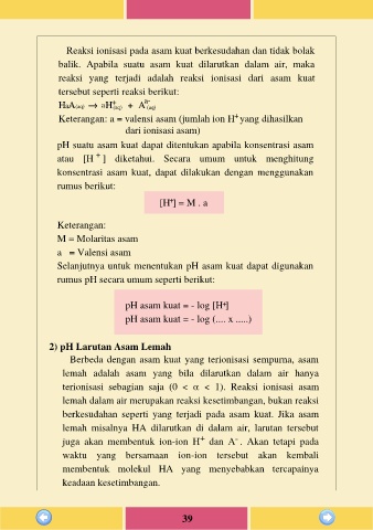 terionisasi sebagian saja (0 < α < 1). Reaksi ionisasi asam