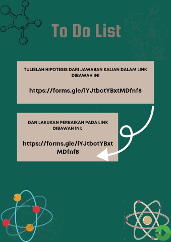 To Do List TULISLAH HIPOTESIS DARI JAWABAN KALIAN DALAM LINK DIBAWAH INI https://forms.gle/iYJtbctYBxtMDfnf8 DAN LAKUKAN PERBAIKAN PADA LINK DIBAWAH INI: https://forms.gle/iYJtbctYBxt MDfnf8
