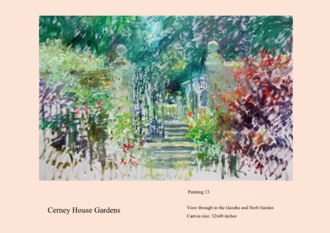 Painting 13 Cerney House Gardens View through to the Gazebo and Herb Garden Canvas size: 32x48 inches