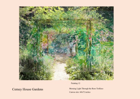 Painting 12 Cerney House Gardens Morning Light Through the Rose Trellises Canvas size: 60x72 inches