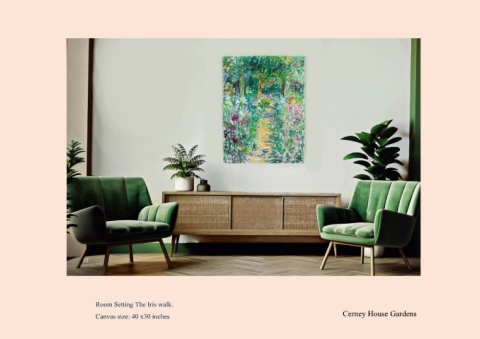 Room Setting The Iris walk. Canvas size: 40 x30 inches Cerney House Gardens