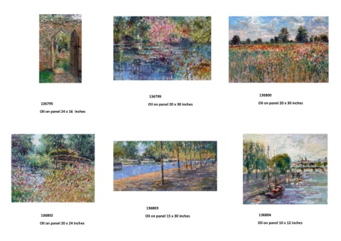 136799 136800 136795 Oil on panel 20 x 30 inches Oil on panel 20 x 30 inches Oil on panel 24 x 16 inches 136803 136802 Oil on panel 15 x 30 inches 136804 Oil on panel 20 x 24 inches Oil on panel 10 x 12 inches