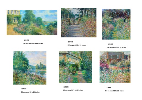 137675 137679 Oil on canvas 30 x 60 inches 137683 Oil on panel 20 x 24 inches Oil on panel 20 x 19 inches 137686 137689 137685 Oil on panel 17x 16.5 inches Oil on panel 20 x 19 inches Oil on panel 20 x 20 inches