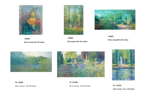 140877 139859 139860 Oil on canvas30 x 60 inches Oil on panel 48 x 32 inches Oil on canvas 40 x 32 inches FG 141287 FG 141288 Oil on canvas: 30 x 60 inches Oil on canvas: 36 x 66 inches FG 141293 Oil on canvas: 39 1/2 x 29 inches