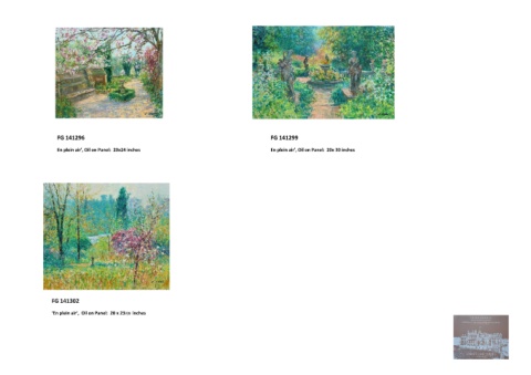 FG 141296 FG 141299 En plein air’, Oil on Panel: 20x24 inches En plein air’, Oil on Panel: 20x 30 inches FG 141302 ‘En plein air’, Oil on Panel: 20 x 237/8 inches